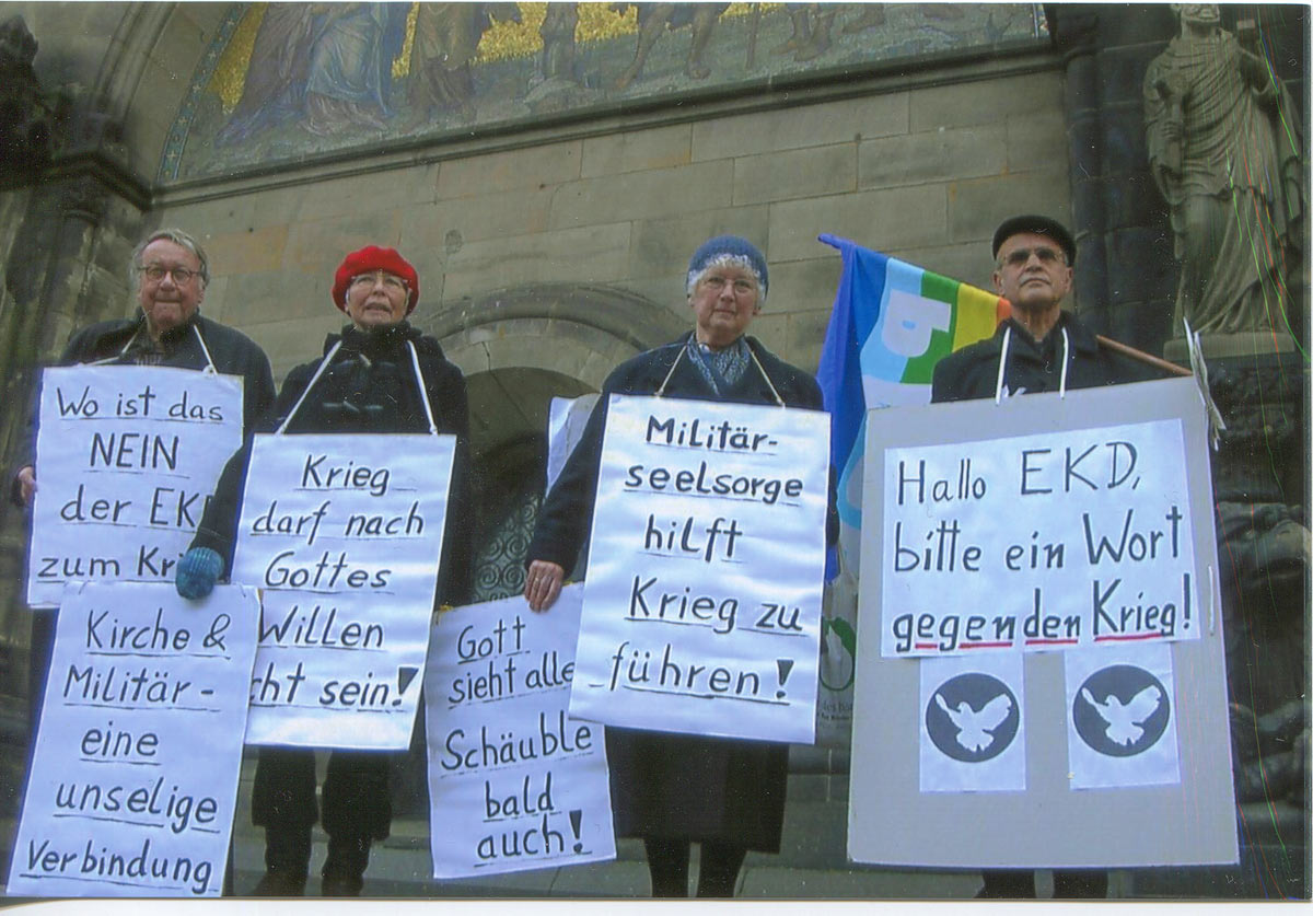 Mahnwache des Friedensforums Bremen zur EKD-Synode am 2. November 2008 vor dem St. Petri Dom, Bremen.